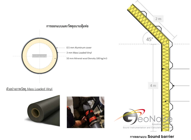 จากการประเมินประสิทธิภาพควบคู่กับความคุ้มค่าทางการลงทุน ทางเราได้เสนอแนวทางการหุ้มฉนวนบริเวณปล่องระบาย (Stack) เป็นมาตรการอันดับแรก เนื่องจากเป็นแหล่งกำเนิดเสียงหลัก (Dominant Noise Source) อย่างไรก็ตาม ระดับเสียงรบกวนที่ตรวจวัดได้ในชุมชนมีค่าเฉลี่ยสูงกว่าฉากหลังอยู่ประมาณ 14 dBA และมีแนวโน้มจะสูงขึ้นในช่วงเวลากลางคืน ดังนั้นการหุ้มฉนวนเฉพาะ Stack อาจไม่เพียงพอและยังมีความเสี่ยงที่จะเกิดการร้องเรียนได้ในอนาคต